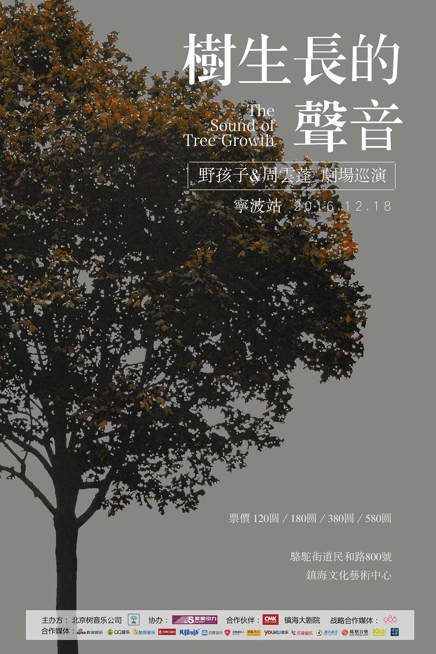 野孩子&周云蓬“树生长的声音”2016全国剧场巡演全面开启,此次巡演包括杭州站、宁波站、成都站、贵阳站、北京站。另外,宁波站和贵阳站也是剧场首秀。作为此次巡演的第二站,宁波这座充满热情、活力和幸福感的城市又将带给我们怎样的惊喜?